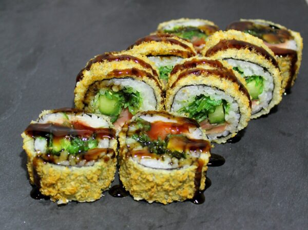 Tuncis, jūras zāles – Wakame, gurķis, terijaki mērce, tempura – Panko