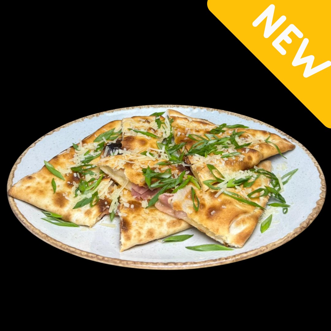 Vītināts šķiņķis, jalapeno, parmezāns, svaigi lociņi.